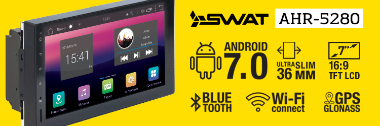 AHR-5280 – автомобильная магнитола 2 din, продающаяся под торговой маркой SWAT. Относится к серии устройств, работающих на платформе Android и располагающих большим сенсорным дисплеем (7”) для удобства пользования. Функциональная, надёжная и простая в установке. Поддерживает Bluetooth и Wi-Fi, имеет свободный слот для карт памяти.