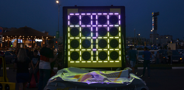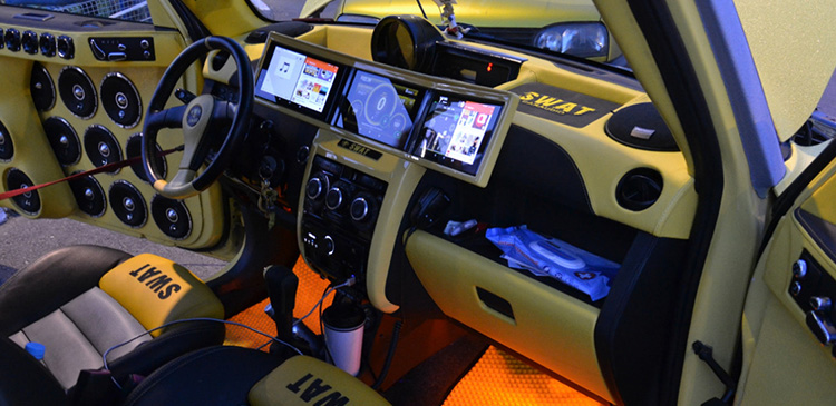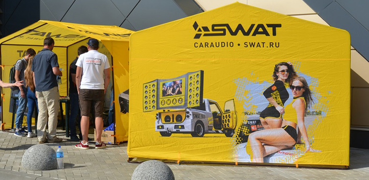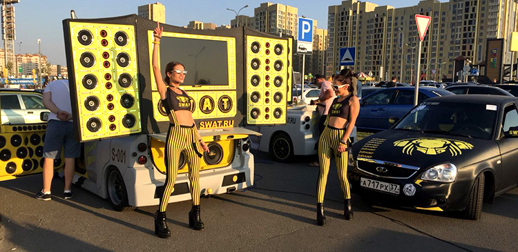 Команду SWAT TEAM представлял легендарный автомобиль Toyota Scion XB из Новосибирска. Яркий, зрелищный и мощный демокар, в котором установлено 133 динамика, прекрасно путешествует по всей России и зарубежью своим ходом, демонстрируя всем высокие эксплуатационные качества проекта, надежность и великолепный звук автомобильных компонентов.