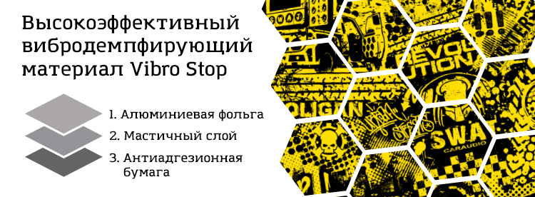 - Мастичный слой — высоконаполненная полимерная композиция на каучуковой основе с комплексом компонентов, вибропоглощающий (снижающий уровень шума) материал, отличается толщиной в разных вариатнах исполнения.